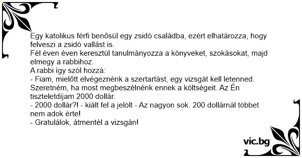 Egy katolikus férfi benősül egy zsidó családba, ezért elhatározza, hogy felveszi a zsidó vallást is.