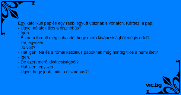 Egy katolikus pap és egy rabbi együtt utaznak a vonaton. Kérdezi a pap: