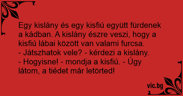 Egy kislány és egy kisfiú együtt fürdenek a kádban. A kislány észre veszi, hogy a kisfiú lábai között van valami furcsa.
