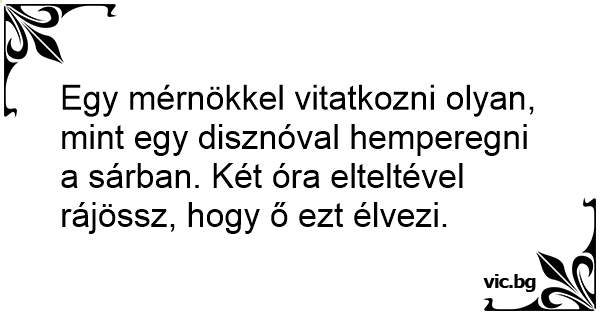 Egy mérnökkel vitatkozni olyan, mint egy disznóval hemperegni a sárban. Két óra elteltével rájössz, hogy ő ezt élvezi.