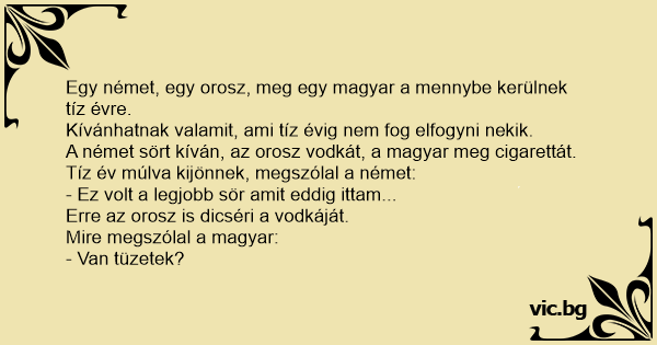 Egy német, egy orosz, meg egy magyar a mennybe kerülnek tíz évre.