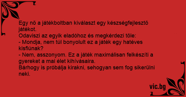 - Nem, asszonyom. Ez a játék maximálisan felkészíti a gyereket a mai élet kihívásaira.