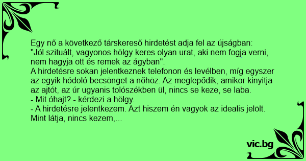 Egy nő a következő társkereső hirdetést adja fel az újságban: