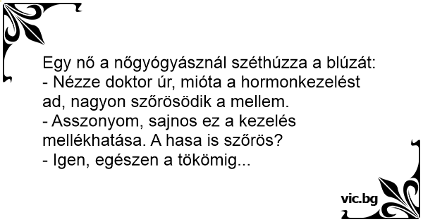 - Nézze doktor úr, mióta a hormonkezelést ad, nagyon szőrösödik a mellem.