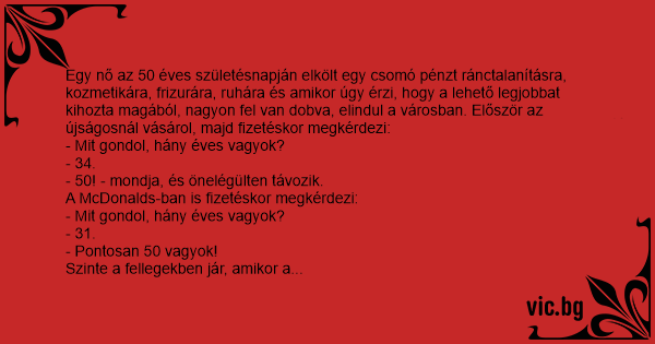 - Asszonyom, maga pontosan 50 éves.