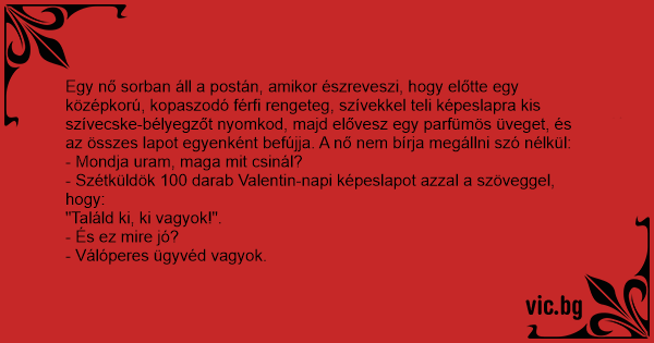 - Szétküldök 100 darab Valentin-napi képeslapot azzal a szöveggel, hogy: