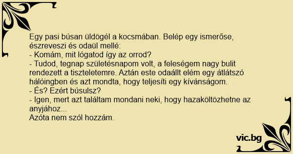 - Komám, mit lógatod így az orrod?
