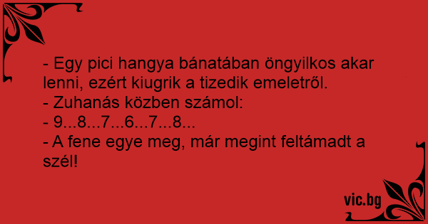- Egy pici hangya bánatában öngyilkos akar lenni, ezért kiugrik a tizedik emeletről.