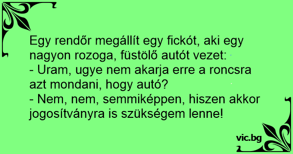 Egy rendőr megállít egy fickót, aki egy nagyon rozoga, füstölő autót vezet: