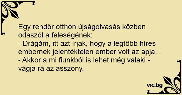 Egy rendőr otthon újságolvasás közben odaszól a feleségének: