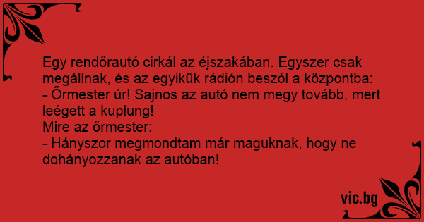 - Őrmester úr! Sajnos az autó nem megy tovább, mert leégett a kuplung!