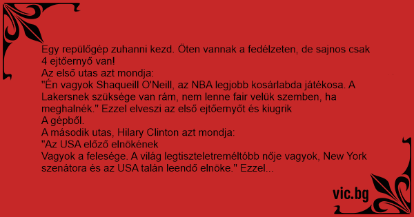 Egy repülőgép zuhanni kezd. Öten vannak a fedélzeten, de sajnos csak 4 ejtőernyő van!