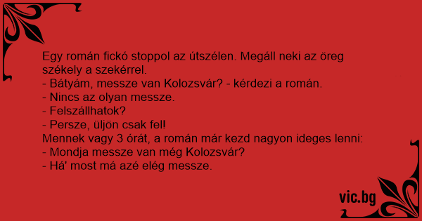 - Bátyám, messze van Kolozsvár? - kérdezi a román.
