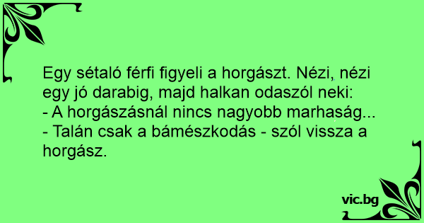 - Talán csak a bámészkodás - szól vissza a horgász.