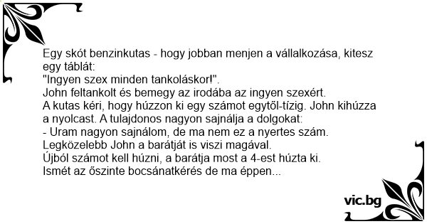 - Te figyelj haver! Ez a benzinkutas átvert, nem is ad ingyen szexet a tankolásért.