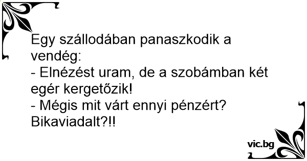 - Elnézést uram, de a szobámban két egér kergetőzik!