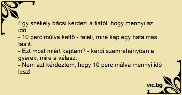 Egy székely bácsi kérdezi a fiától, hogy mennyi az idő.