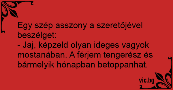 - Jaj, képzeld olyan ideges vagyok mostanában. A férjem tengerész és bármelyik hónapban betoppanhat.