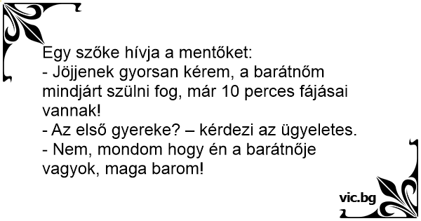 - Jöjjenek gyorsan kérem, a barátnőm mindjárt szülni fog, már 10 perces fájásai vannak!