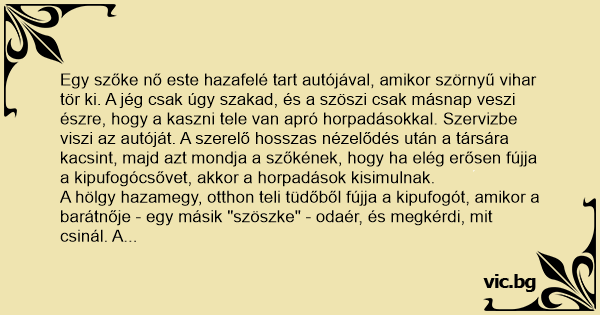 Egyszer a szőke nőnek behorpad a kocsija és ezért elviszi egy szerelőhöz. A szerelő mivel látja,hogy szőke, gondolja jól megtréfálja. - Jó napot miben segíthetek? - Behorpadt a kocsim szeretném ha...