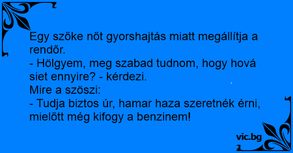 - Hölgyem, meg szabad tudnom, hogy hová siet ennyire? - kérdezi.