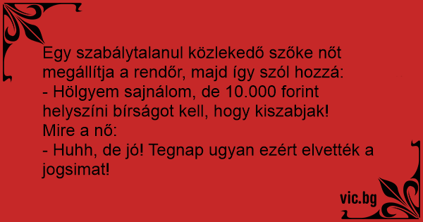 - Hölgyem sajnálom, de 10.000 forint helyszíni bírságot kell, hogy kiszabjak!