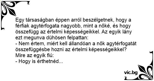 - Nem értem, miért kell állandóan a nők agytérfogatát összefüggésbe hozni az értelmi képességeikkel?