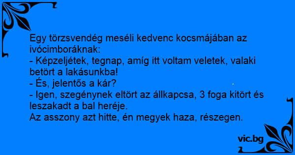 Egy törzsvendég meséli kedvenc kocsmájában az ivócimboráknak: