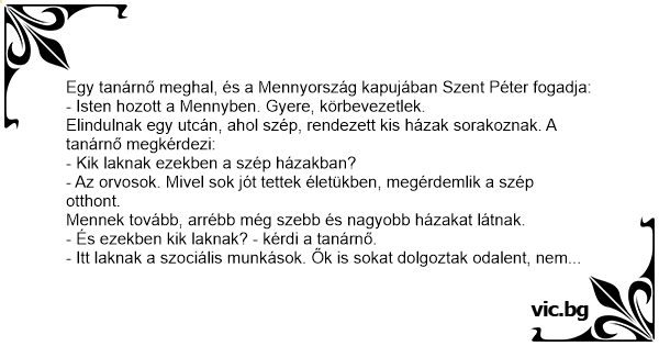 Egy tanárnő meghal, és a Mennyország kapujában Szent Péter fogadja: