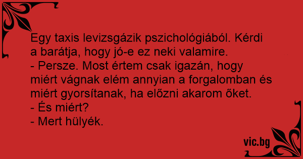 Egy taxis levizsgázik pszichológiából. Kérdi a barátja, hogy jó-e ez neki valamire.