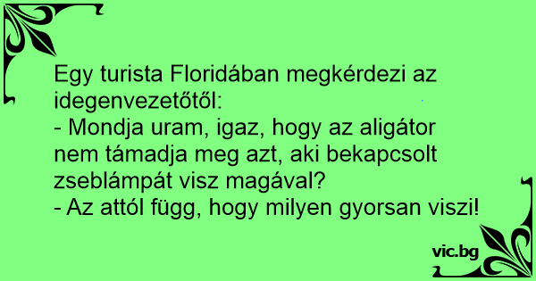 - Mondja uram, igaz, hogy az aligátor nem támadja meg azt, aki bekapcsolt zseblámpát visz magával?