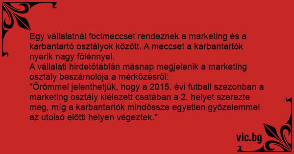 A vállalati hirdetőtáblán másnap megjelenik a marketing osztály beszámolója a mérkőzésről: