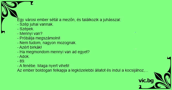 Egy városi ember sétál a mezőn, és találkozik a juhásszal: