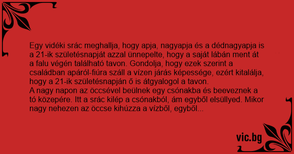 - Dédi, hogy van az, hogy apám is tudott a születésnapján a vízen járni, a nagyapám is és a dédnagyapám is, én meg nem tudok? Talán valami átok ül rajtam?