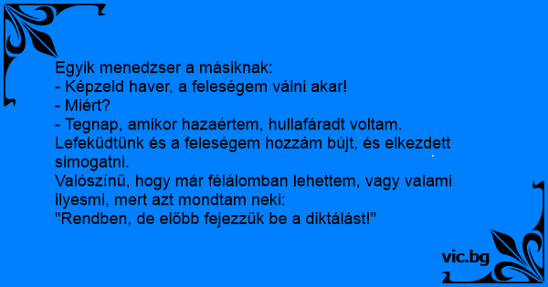 - Tegnap, amikor hazaértem, hullafáradt voltam. Lefeküdtünk és a feleségem hozzám bújt, és elkezdett simogatni.