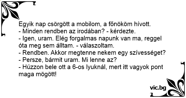 Egyik nap csörgött a mobilom, a főnököm hívott.