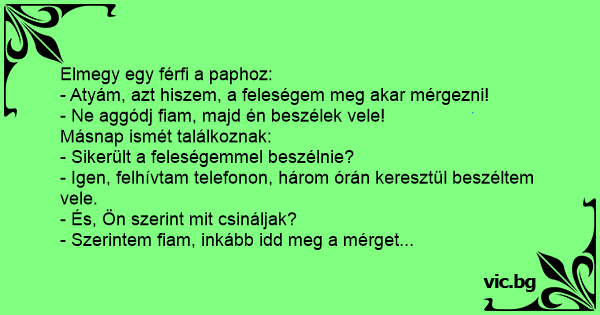 - Atyám, azt hiszem, a feleségem meg akar mérgezni!