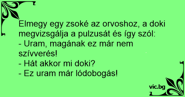 Elmegy egy zsoké az orvoshoz, a doki megvizsgálja a pulzusát és így szól: