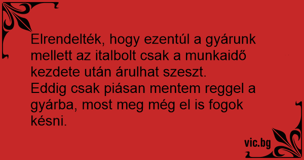 Eddig csak piásan mentem reggel a gyárba, most meg még el is fogok késni.