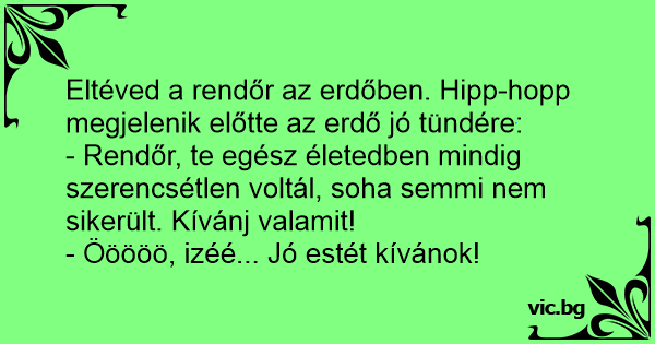 - Rendőr, te egész életedben mindig szerencsétlen voltál, soha semmi nem sikerült. Kívánj valamit!