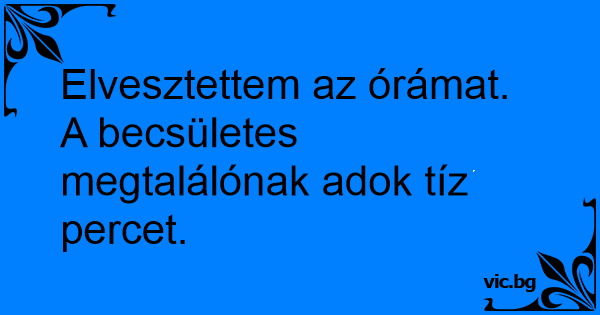 Elvesztettem az órámat. A becsületes megtalálónak adok tíz percet.