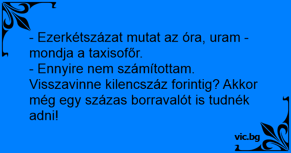 - Ennyire nem számítottam. Visszavinne kilencszáz forintig? Akkor még egy százas borravalót is tudnék adni!