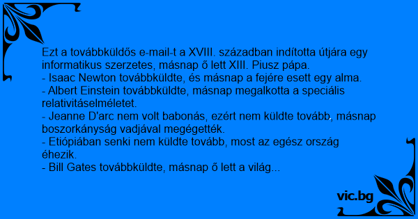 Ezt a továbbküldős e-mail-t a XVIII. században indította útjára egy informatikus szerzetes, másnap ő lett XIII. Piusz pápa.