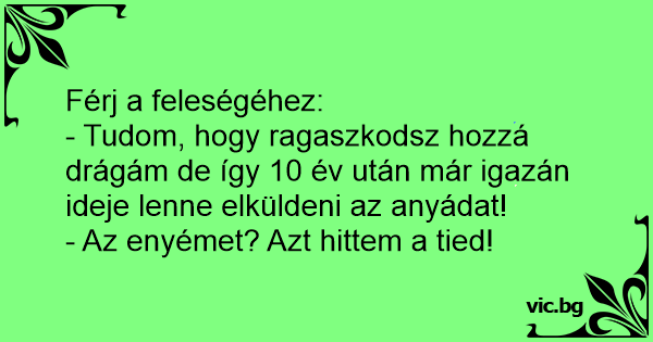 - Tudom, hogy ragaszkodsz hozzá drágám de így 10 év után már igazán ideje lenne elküldeni az anyádat!