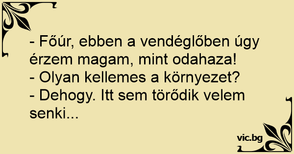 - Főúr, ebben a vendéglőben úgy érzem magam, mint odahaza!