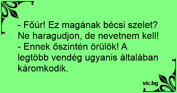 - Ennek őszintén örülök! A legtöbb vendég ugyanis általában káromkodik.