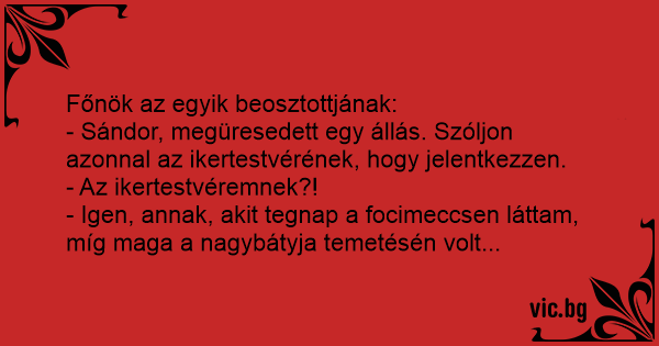 - Sándor, megüresedett egy állás. Szóljon azonnal az ikertestvérének, hogy jelentkezzen.