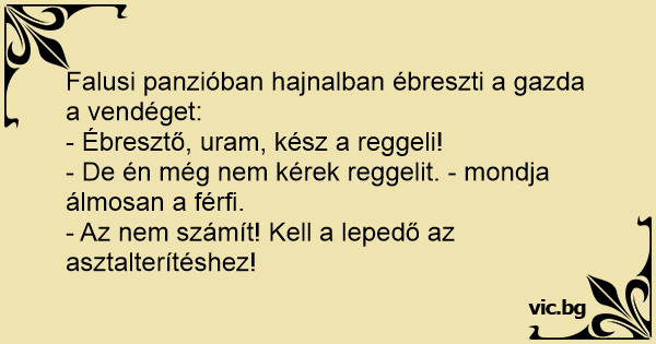 - De én még nem kérek reggelit. - mondja álmosan a férfi.
