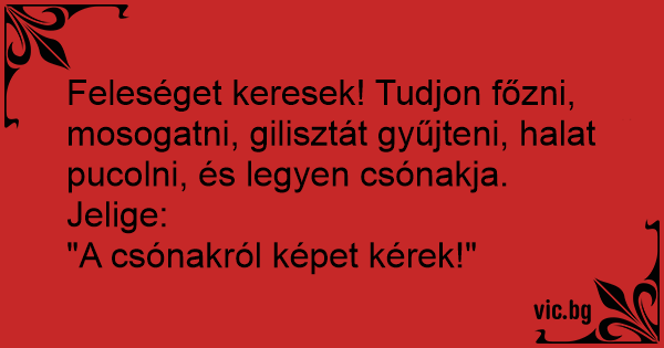 Feleséget keresek! Tudjon főzni, mosogatni, gilisztát gyűjteni, halat pucolni, és legyen csónakja.