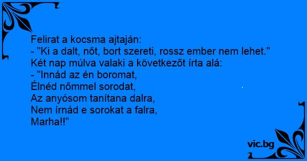 Felirat a kocsma ajtaján: -...
